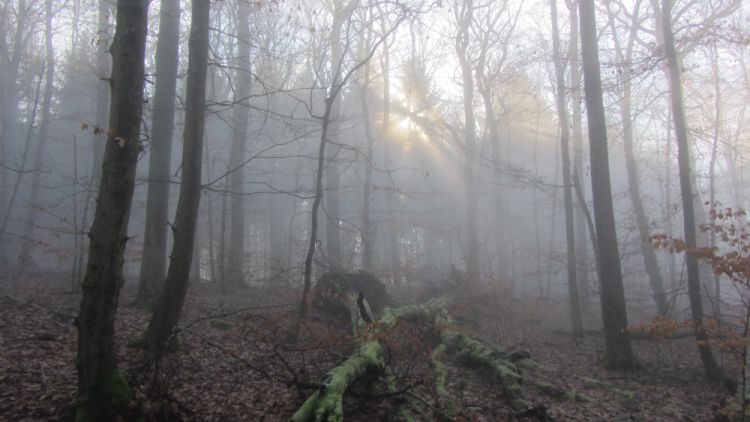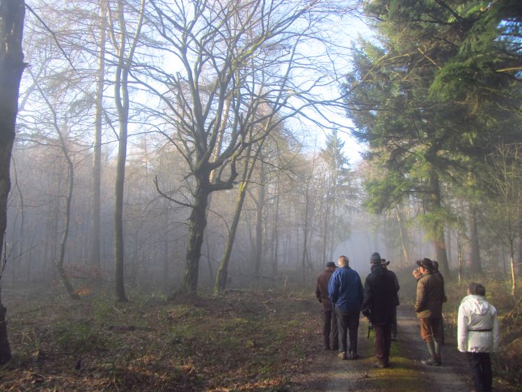 Während einerseits beim Sachsenheimer Narrenumzug zottelige Gestalten zu bestaunen waren, zog andererseits eine kleine Gruppe durch den Wald, um über schemenhafte Baumgestalten rätseln zu können. Oben am Rennweg und sogar noch am frühen Nachmittag bot sich dafür eine besondere Stimmung an. Mancher Baum stand wie ein Riese im nebeligen Kleid. Erst später und hinuntergehend zum Kirbachtal hatte die Sonne diesen Spuk beendet.